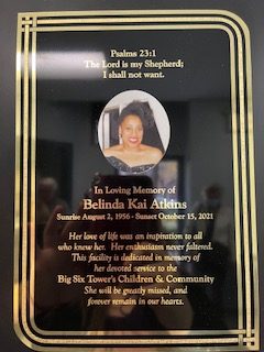 The community room in Building 2 is dedicated to the memory of Belinda Kai Atkins for her unwavering dedication and devoted service to the Big Six Towers children and community.